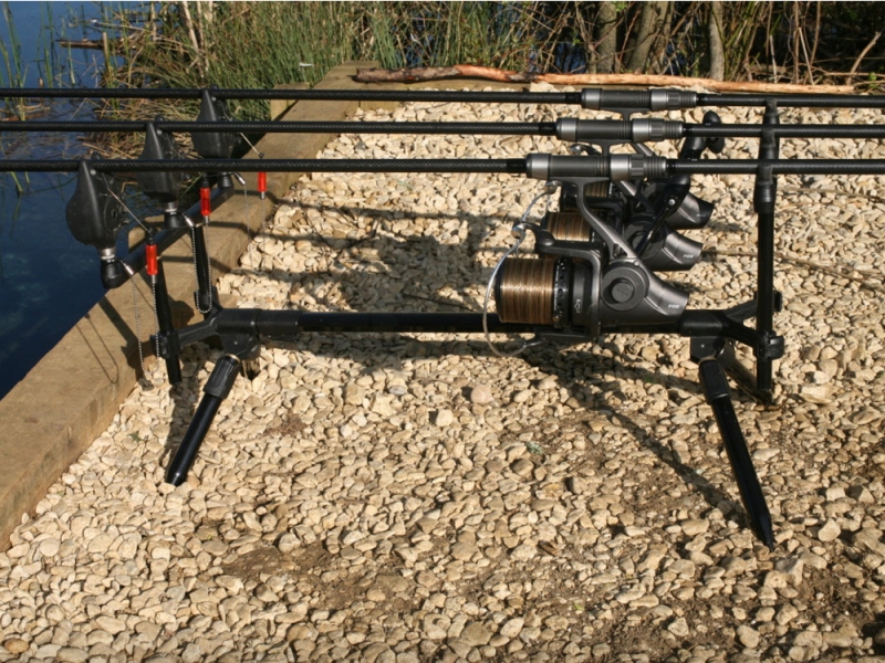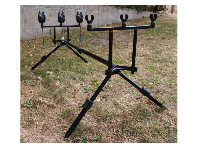 FOX stojan na pruty, vhodný až na 3 pruty, lehký hliníkový rám, včetně přepravního pouzdra