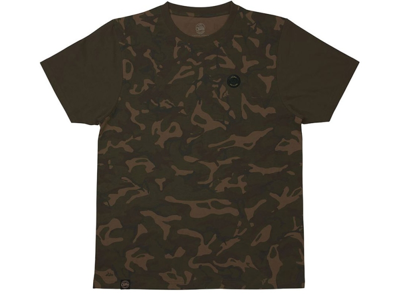 Tričko s tištěným Fox Camo vzorem na tělové části trika. Tmavá khaki barva na rukávech a značka Fox Camo Edition