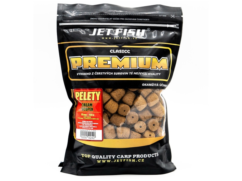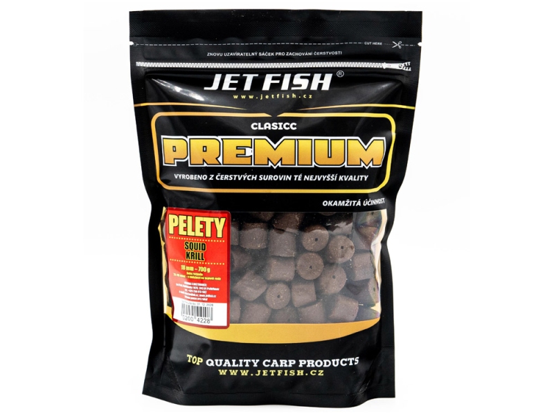 JET FISH Premium Clasicc Pelety jsou vynikající jako doplněk k boilie v řadě Premium Clasicc danné příchutě. 18 mm pelety mají dírku, takže se dají použít i jako samostatná nástraha. Nabízíme je ve všech příchutích jako boilie v řade Premium Clasicc