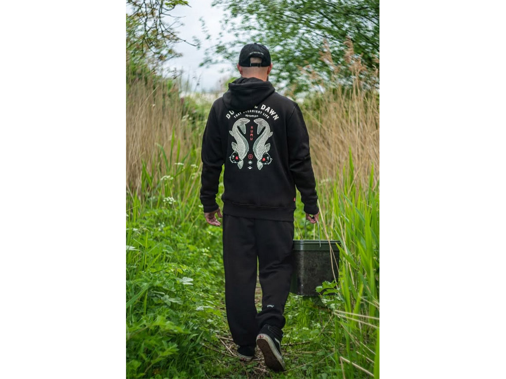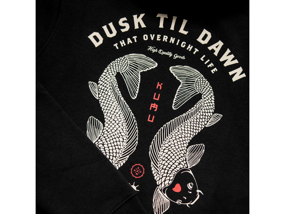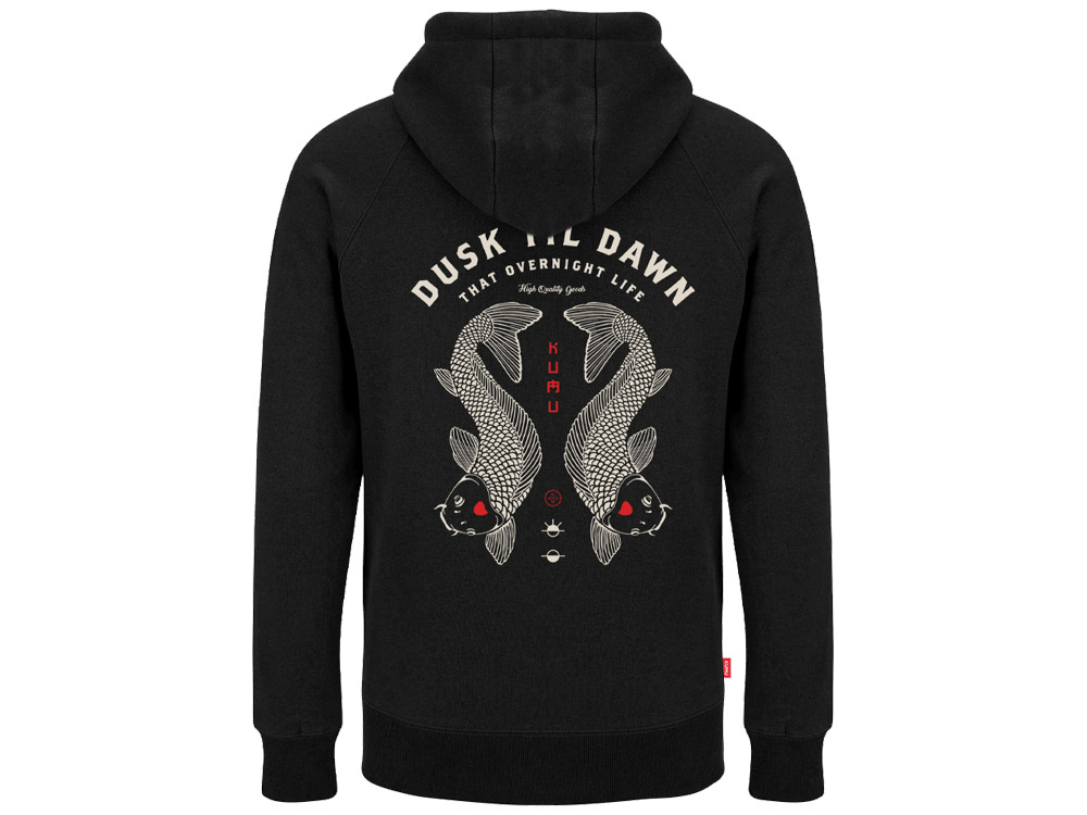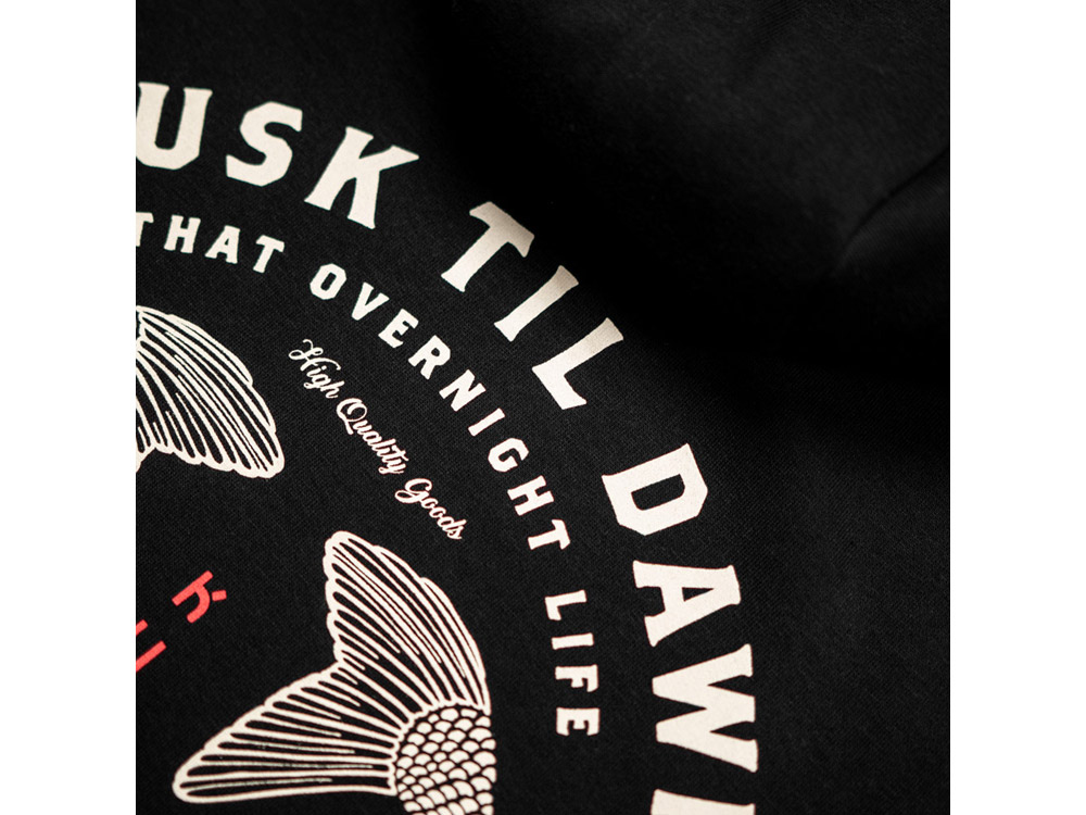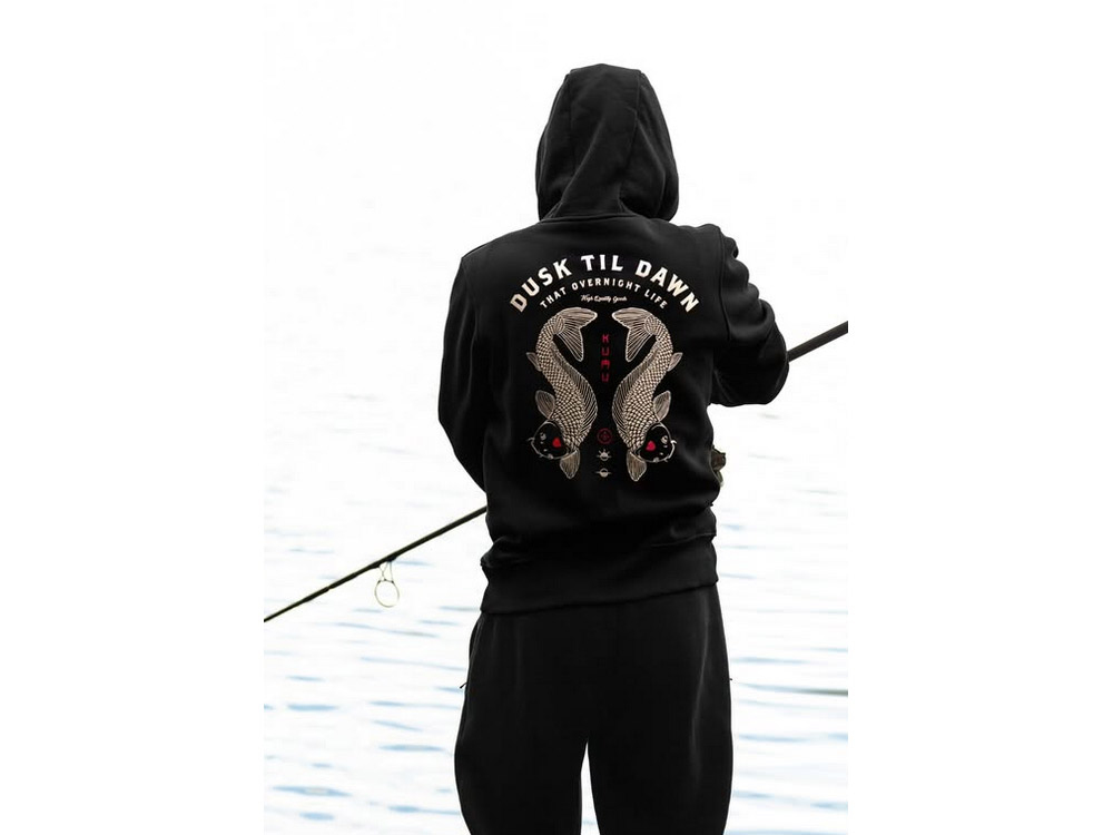 Mikina pro ty, kteří milují lovit celý den a ani noční rybolov pro ně není překážkou! DUSK TILL DOWN v překladu znamená od úsvitu do soumraku.Ručně kreslená grafika v bílé a kontrastní červené. Vytištěno na naší luxusní látce 320 g/m2 s tkanými detaily na boční poutce.
