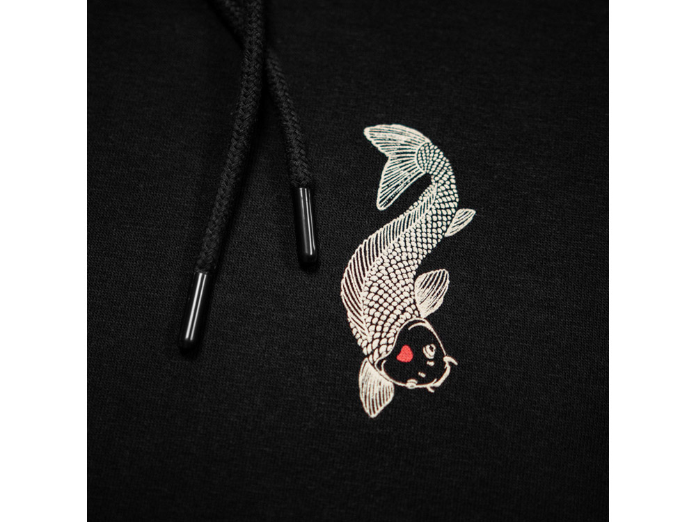 Stylová rybářská mikina s kapucí, s originální ručně vytvořenou grafikou následně nanesenou na textil sítotiskem