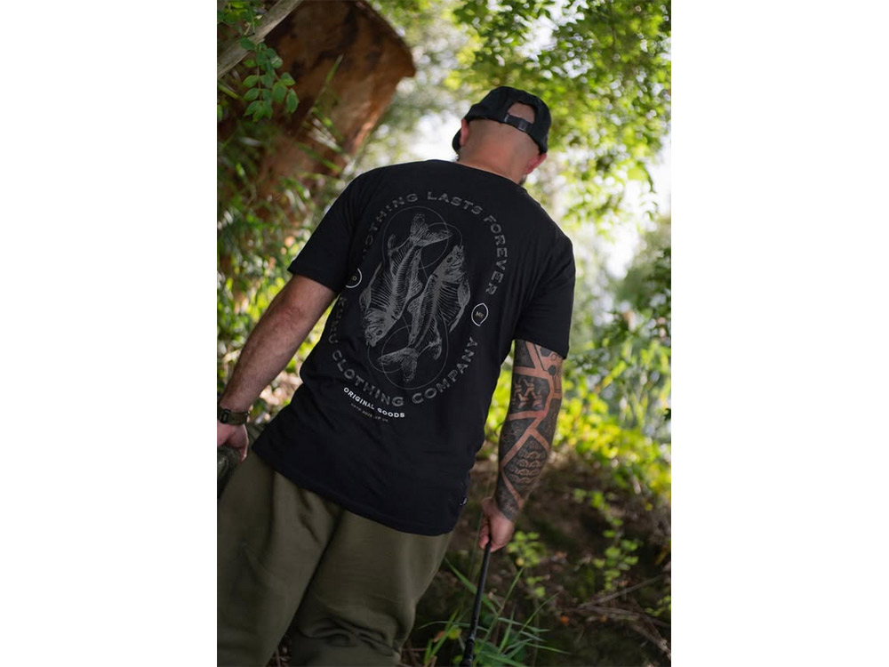Fallen Kings – „Padlí králové,“ pocta všem velkým kaprům minulosti. Pečlivě vytvořené pomocí tečkování / pointilismu; kreslicí technika, při které se plochy světla a stínu vytvářejí pouze pomocí bodů. Vytištěno na super měkké bavlně s gramáží 140 g/m2 s tkanými detaily.