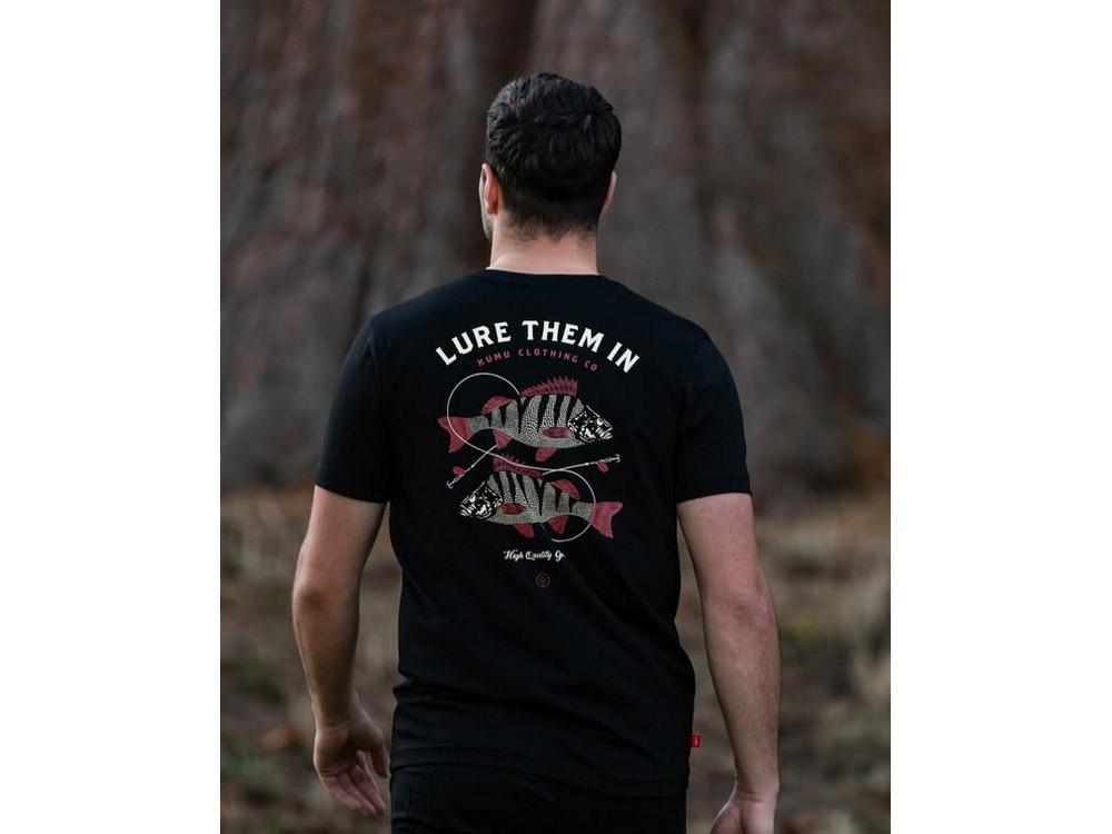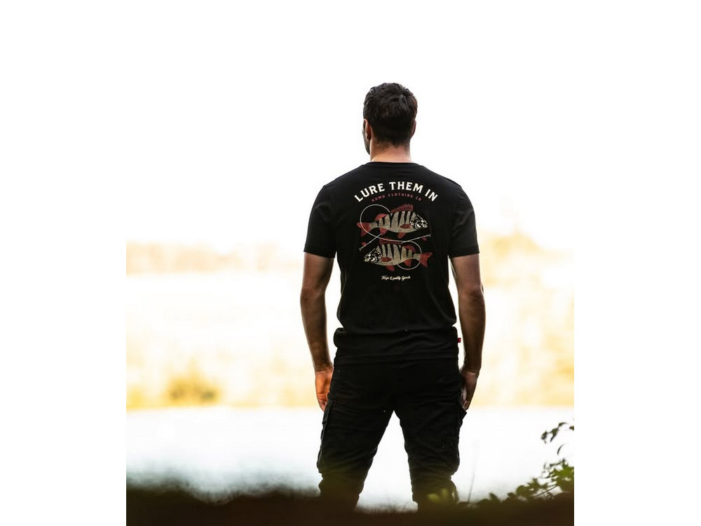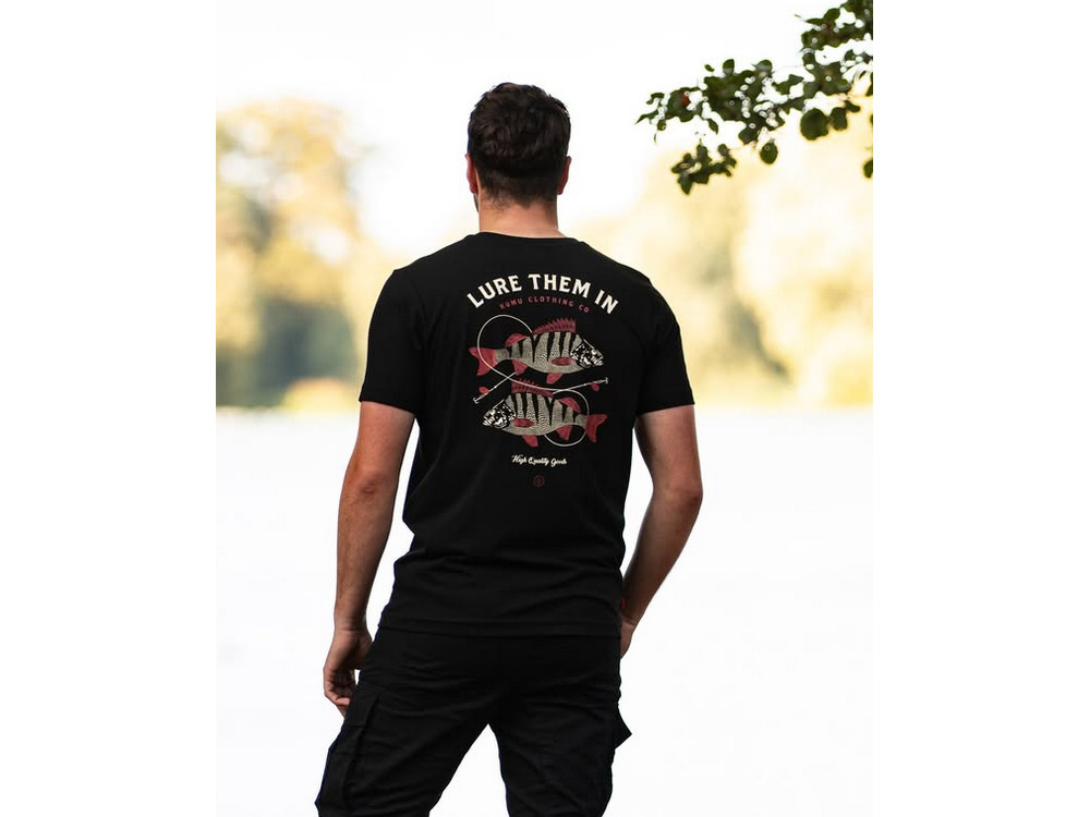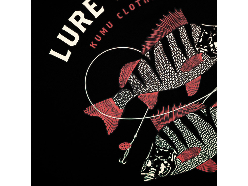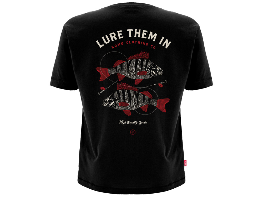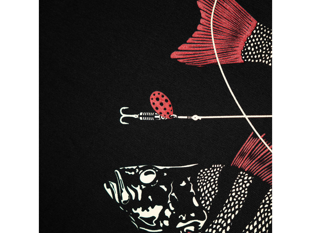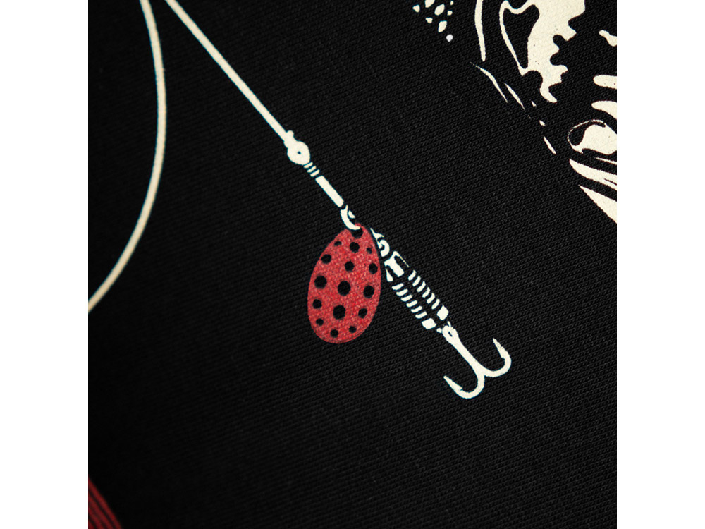 Motiv Lure Them In byl ručně kreslený od prvního tahu a symbolizuje lákání těch nejopatrnějších „stripeys“ – okounů – z hlubin, kde se skrývají. Grafika v kombinaci off-white a červené barvy působí výrazně, ale stále čistě a stylově.