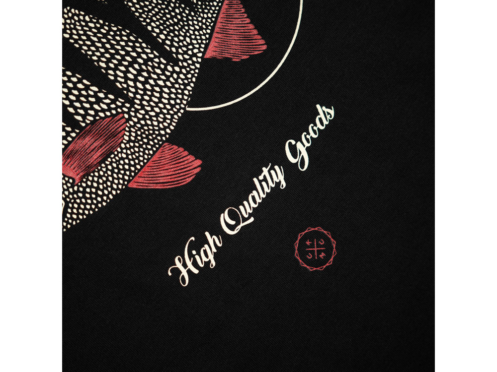 Tričko je vyrobeno z mimořádně jemné organické bavlny o gramáži 150 g/m2, která zajišťuje vysoký komfort při nošení. Detailní dvoubarevný sítotisk doplňuje tkaný boční štítek, jenž podtrhuje kvalitní zpracování a prémiový charakter tohoto kousku.