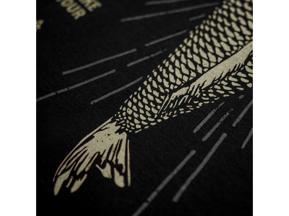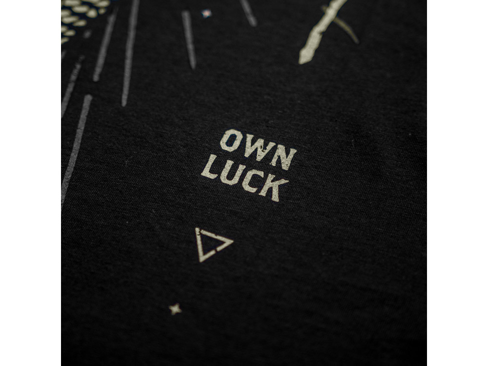 Grafika Make Your Own Luck znamená „Buďte strůjcem svého štěstí.“ Tento slogan se ptá na to, jakou roli hraje štěstí při našem rybaření. S tolika vnějšími vlivy, které jsou mimo naši kontrolu, z nichž všechny hrají svoji roli, od fází měsíce až po tlak vzduchu, pěvně věříme filozofii, že pouze my sami jsme strůjci svého vlastního štěstí. Nejen v rybaření, ale i v životě obecně. Ručně kreslená grafika vytištěná na super měkké 100% bavlněné tkanině 165gsm se starobylými detaily v mosazném provedení.