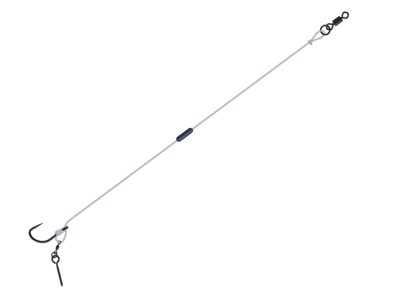 Hotový návazec z tuhého fluorocarbonu, který funguje nejlépe na zatopených štěrkovnách a na vodách s velmi opatrnými kapry.