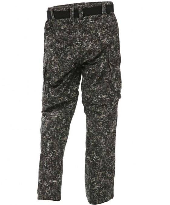 Pohodlné kalhoty, měkký 100% Polyestertrikot se zdrsněným povrchem, digitální design Mimicry Tundra 3D, vodostěsné, PU laminace, vodní sloupec 8000mm
