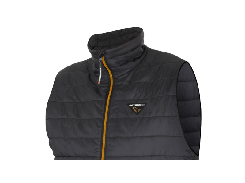 Termo vesta od Savage Gear udržuje vaše tělo v teple, prošívaná-through konstrukce udržuje izolaci na místě, vysoký ochraný límec