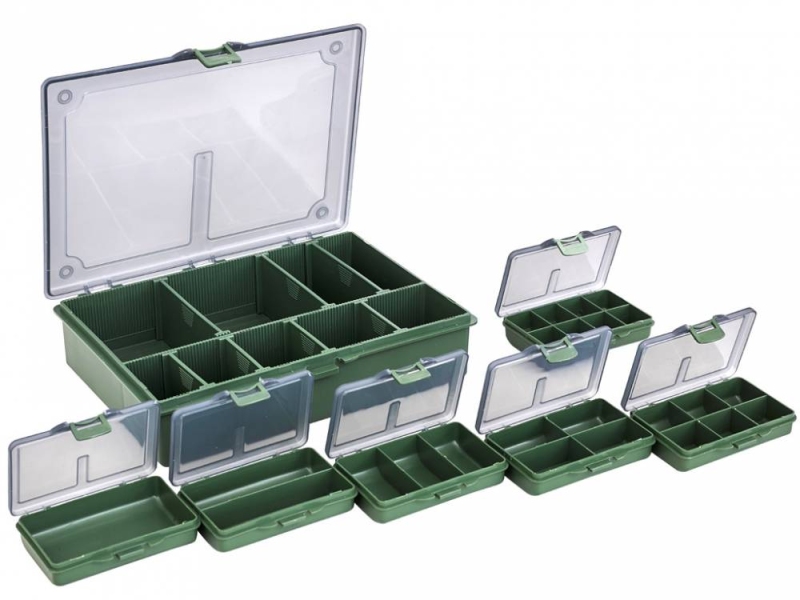 Praktická sada skládající se ze šesti malých a jedné velké krabičky. Pojme veškeré drobnosti, které potřebujete pro svůj rybolov.