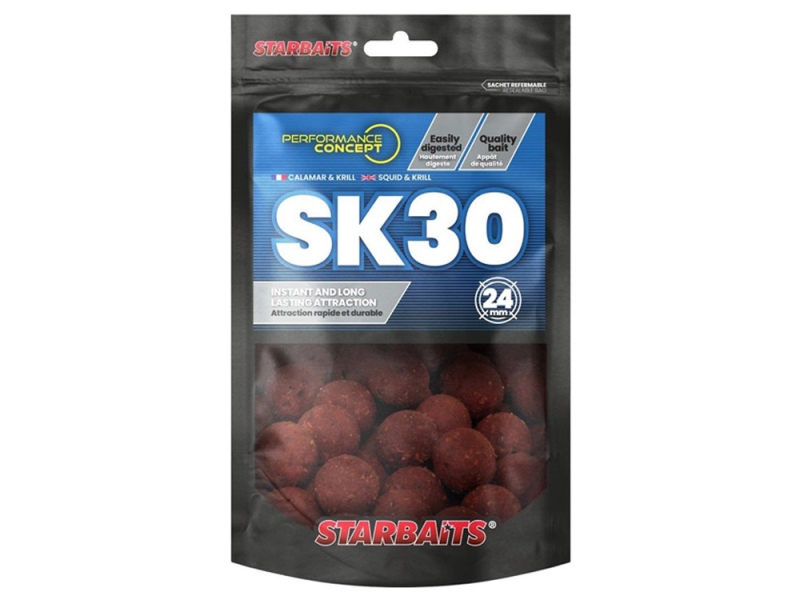 SK30 je bezesporu nejpoužívanější recepturou mezi závodníky na těch nejtěžších kaprařských soutěžích. Tajemstvím účinnosti SK30 na dlouhodobějších výpravách nebo závodech je kombinace špičkové olihňovo-krillové směsi s unikátním přírodním olejem, který vyvolává u ryb potravní závislost, čímž lze dlouhodobě udržet rybu na krmném místě.