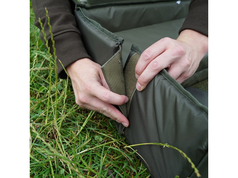 Pro zajištění stabilního spojení jsou na obou stranách „odhákovací kolébky“ připevněny suché zipy. Pro bezpečné uzavření podložky lze víko pevně zavřít pomocí suchého zipu.