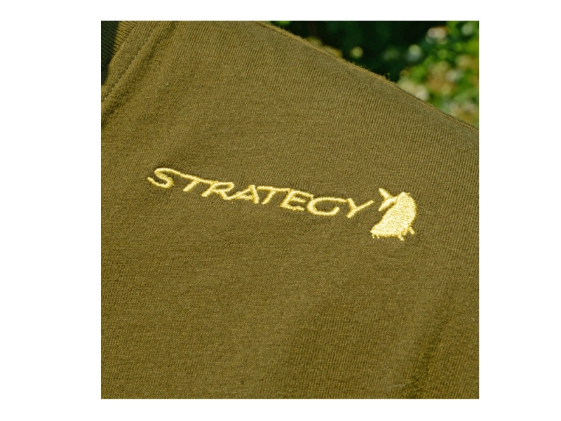 Kvalitní tričko výrobce rybářských doplňků a komponent - STRATEGY. Příjemný materiál (100% bavlna) zelené barvy, výstřih do V, přední prsní kapsička, opatřené vyšívanými a barvenými logy.