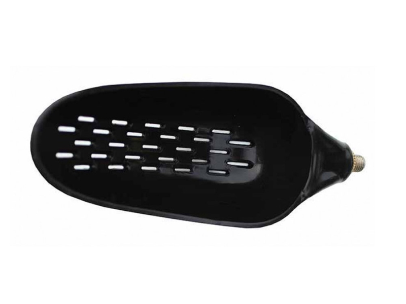 Zakrmovací lopatka se závitem na tyč. Materiál černý plast. Vybavena otvory pro odtékání tekutiny (partiklu atd).