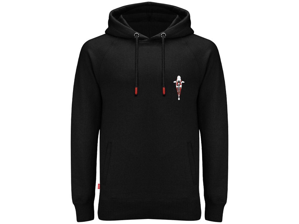 Stylová rybářská mikina s kapucí, s originální ručně vytvořenou grafikou následně nanesenou na textil sítotiskem