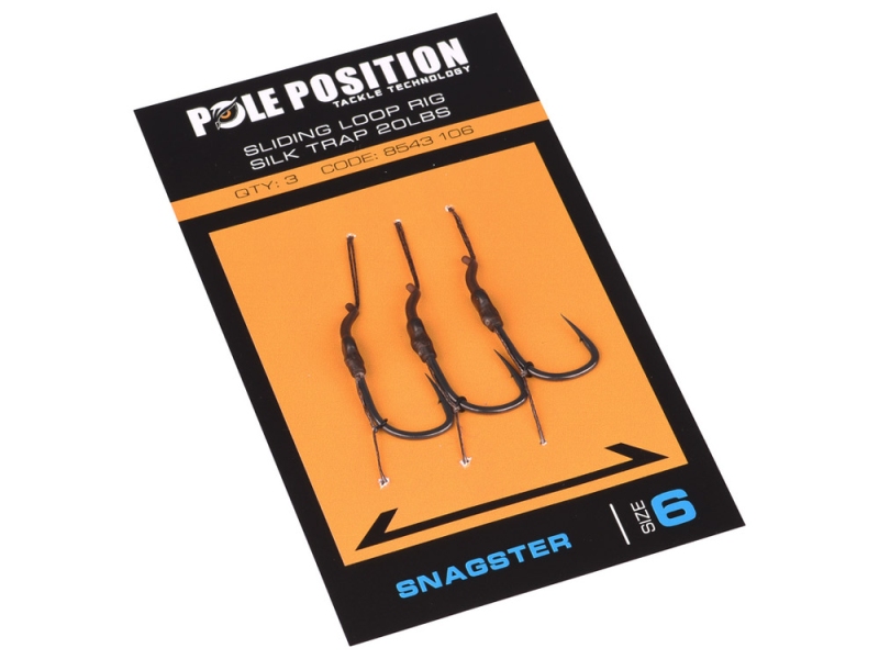 Ideální návazec pro výměnu háčku (pomocí připojení smyčky), pokud se ztupil. Extrémně ostrý Pole Position Snagster háček v kombinaci s rovnátkem a posuvným vlasem vytváří vysoce agresivní návazec, který lze použít téměř v každé situaci. Lze jej lovit pomocí návnad na dno a prezentací sněhuláka.