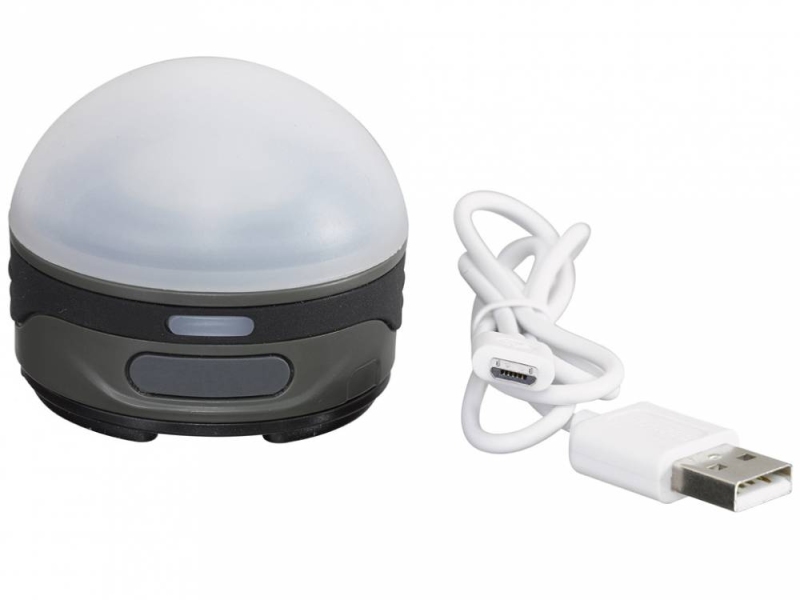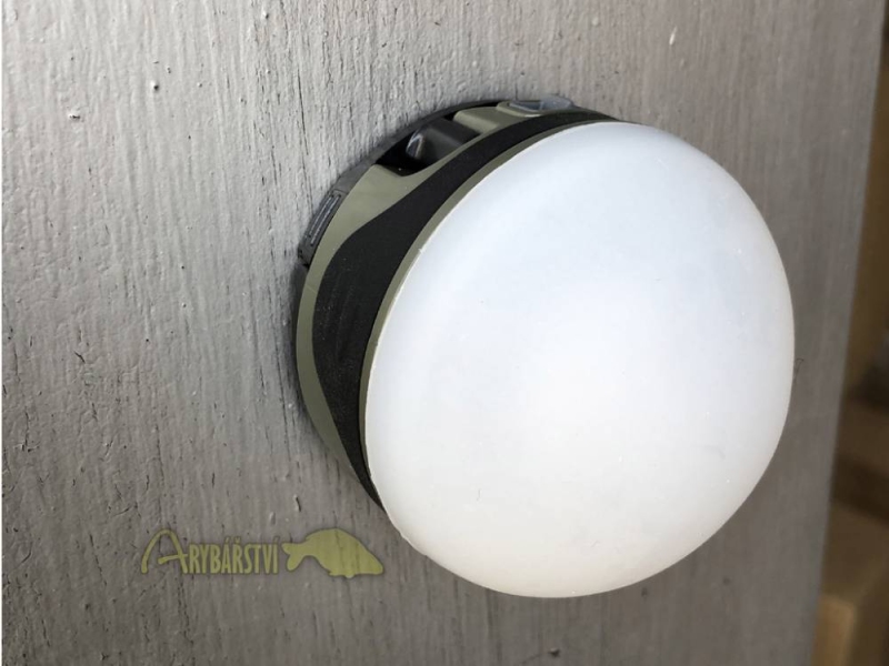 Lampa do bivaku, kterou lze nabíjet pomocí USB. Lze ji položit, zavěsit, přichytit magnetem. Vydává příjemné tlumené LED světlo, které citlivě osvítí bivak. Svítivost 180 lumenů